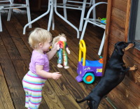 All of us had a great time: Zoya has gotten used to the cabin and she played so well and she liked her walks in the green wagon. A number of times we all took her to the playground next to the Golf Club. Indiana kept chasing chipmunks and rabbits. During the second week we had daily showers that kept the temperature a bit down (lower 50s and higher 60s).