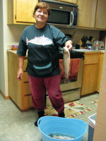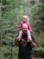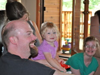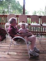 The cabin was big enough for 2 families (total of 7) and our dog Indiana, in a pretty secluded area of the forest and because of its position on the slope of the mountain it had a great view into the valley below where the main road was. Even though we brought everything that we thought we might need with us (like 1/3 of our house), the cabin named Lashley’s (after the name of the owners) where we stayed was equipped with everything you can possibly imagine: two level cabin with a deck on each story with plenty of space for everybody. It was wonderful to be together and at the same time everyone had their own privacy (since there were plenty of rooms).
