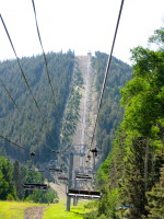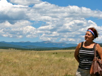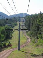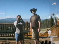 The city itself is located in the valley surrounded by the mountains - 8000 feet above sea level. The cabin we rented was up the hill (8600 feet), so the whole city could be seen from the porch like on the palm of a hand. There is an interesting fact we have noticed by entering the city limit: usually when you enter or leave the city limit there is a sign that says the name of the city and its population (at least what it is in Texas), here the sign has the name of the city and the elevation of it. Angel Fire is definitely a tourist city, although it is busy during major holidays only and very quiet through the rest of the year. The population is about 1000 people (the village I grew up in has the population of 4000 people and 4 times smaller by territorial standards as the size of Angel Fire). People are very friendly and it appeared that everyone knows everybody.