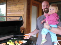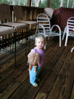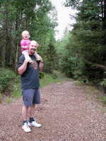 We took daily walks in the forest around the cabin: Zoya enjoyed the walks, she would sit in her green wagon, holding a stick or a rock ☺. Indiana had a blast of a time: he kept chasing the chipmunks that teased him all the time. One time we left the porch door open and a chipmunk got inside the cabin and hid itself in the corner of the sitting room behind the bookshelves. Who doesn’t know much about chipmunks, I’m telling you that although they are very cute, they can make a big mess in the house (they are very close to be as mischievous as their relatives squirrels). I was glad everybody was taking a snooze when the chipmunk got into the house, so I took my position on the couch with the broom: I wasn’t even moving, just breathing and trying to let the little guy know that there is nobody around and the grounds are safe to get out of the hiding. Finally after whole 20 minutes of sitting still it showed its head behind the shelves, I froze and the chipmunk did as well…. Another 15 minutes passed … both of us were motionless. Something creaked in the house and the little guest of mine moved and got under the chair that was very close to the open porch door, I took immediate advantage of the situation and through a couch pillow in the direction of the bookshelves in order to block the entrance to the hiding spot. It worked – the chipmunk ran back to the corner behind the shelves but the pillow was already blocking its way, so it went back under the chair. It was as fast as a mouse. I decided not to wait and put the broom I had into use, obviously the little guy didn’t feel welcome anymore and he seized the first opportunity to get out to the porch. I closed the door to the porch immediately. Pooh-pooh.