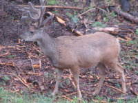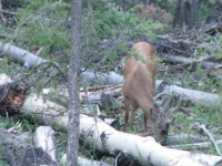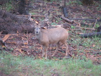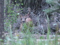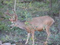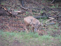 For the 2 weeks we spent time in the cabin, there were a number of times when we saw deer (bucks and does) eating grass and roots right under our noses or just passing by. One time there was a group of 2 and 3 just crossing the trail next to the cabin, so we all went to the porch and watched them walking by. The deer didn't seem to be bothered by the squeaky noises we made by walking on the porch. They just looked at us and then continued to chew on the tree roots.