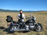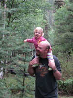 We love our trailer: it can hold so much stuff and the "garage" compartment is big enough to have all our 3 bicycles, Steven's motorcycle, Zoya's wagon and some other little items (like cribs, play-mats, baby fences, etc.). Steven and I were looking forward to a ride around Angel Fire. We took some motorcycle rides in and around on twisty roads – it was fun!