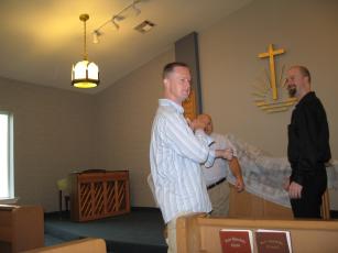 | Priest Jeff Klein, Steven and Paul infront of the altar