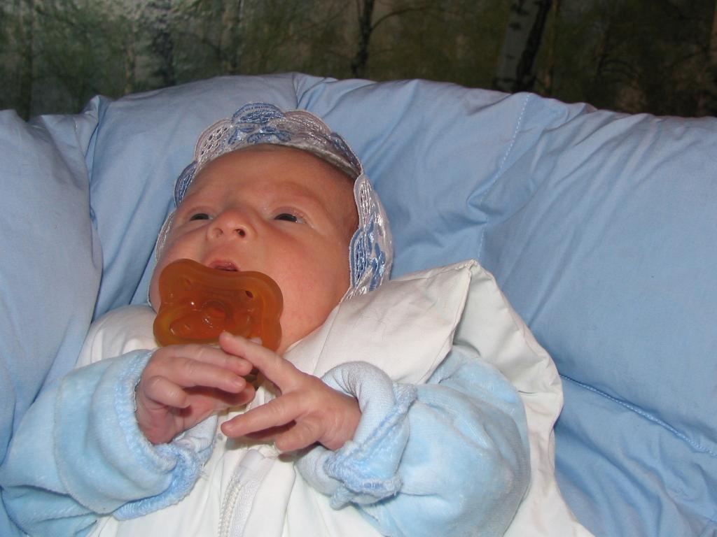 Sofiya is tasting the baby's dummy |