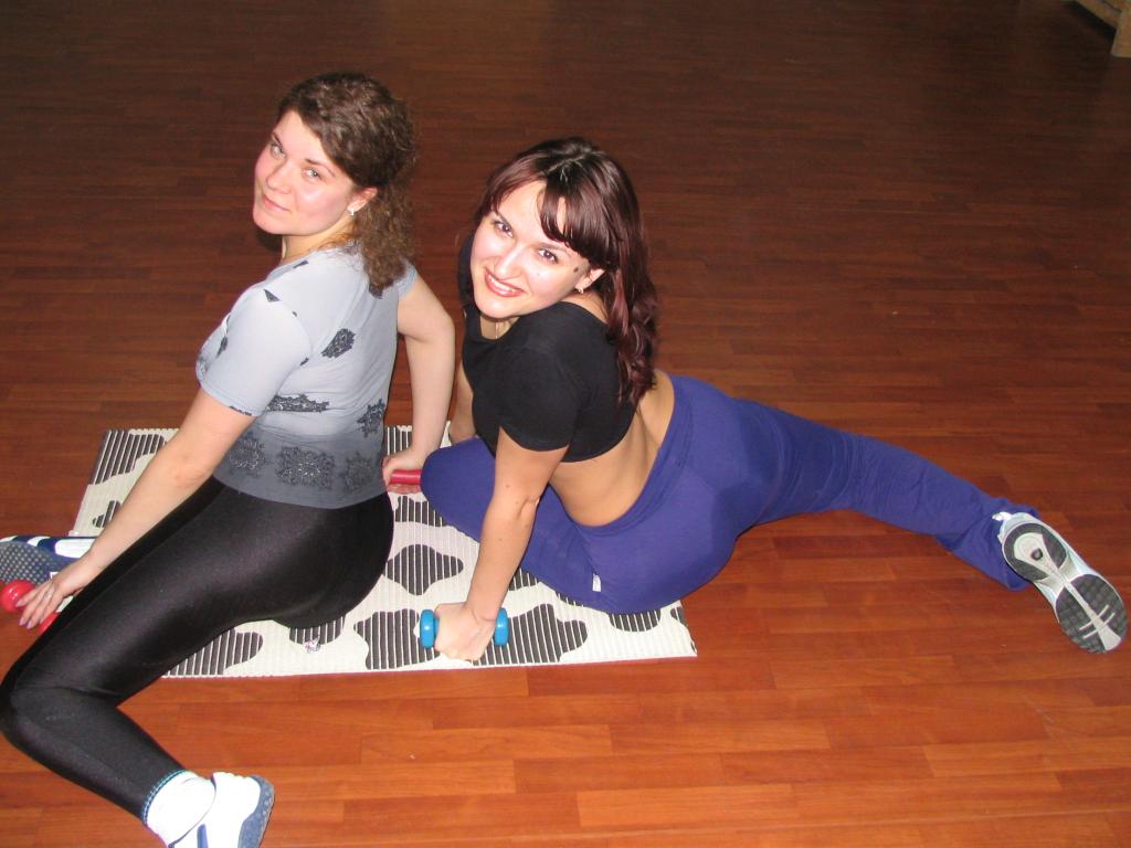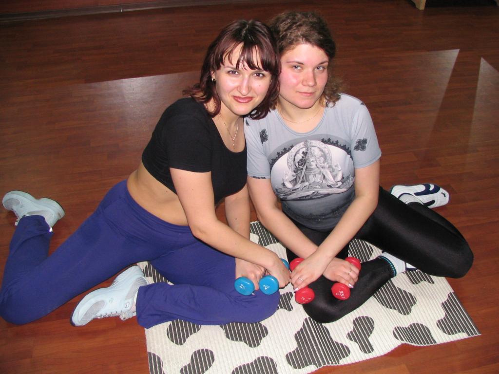 Yuliya and Lena at the aerobics club |