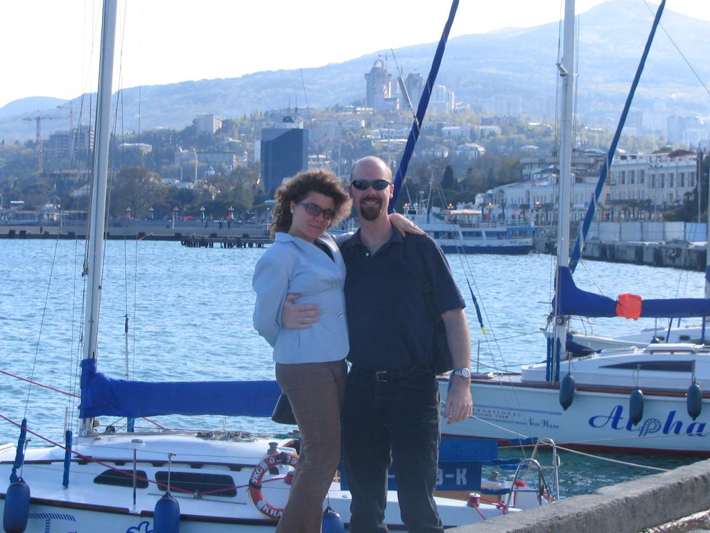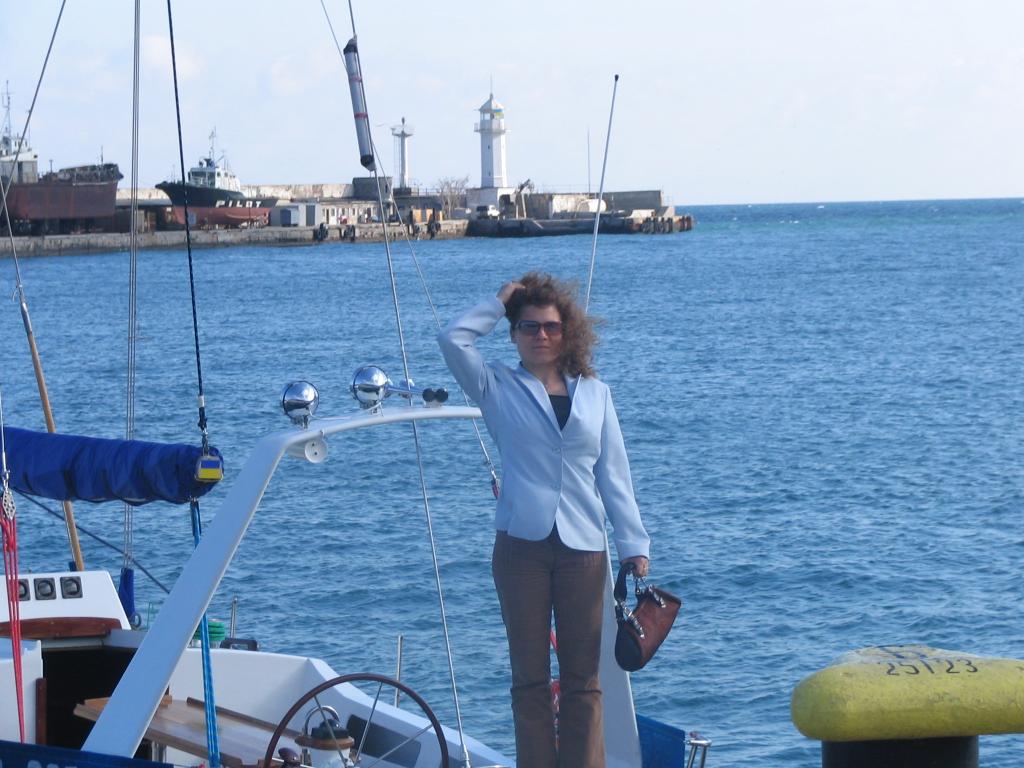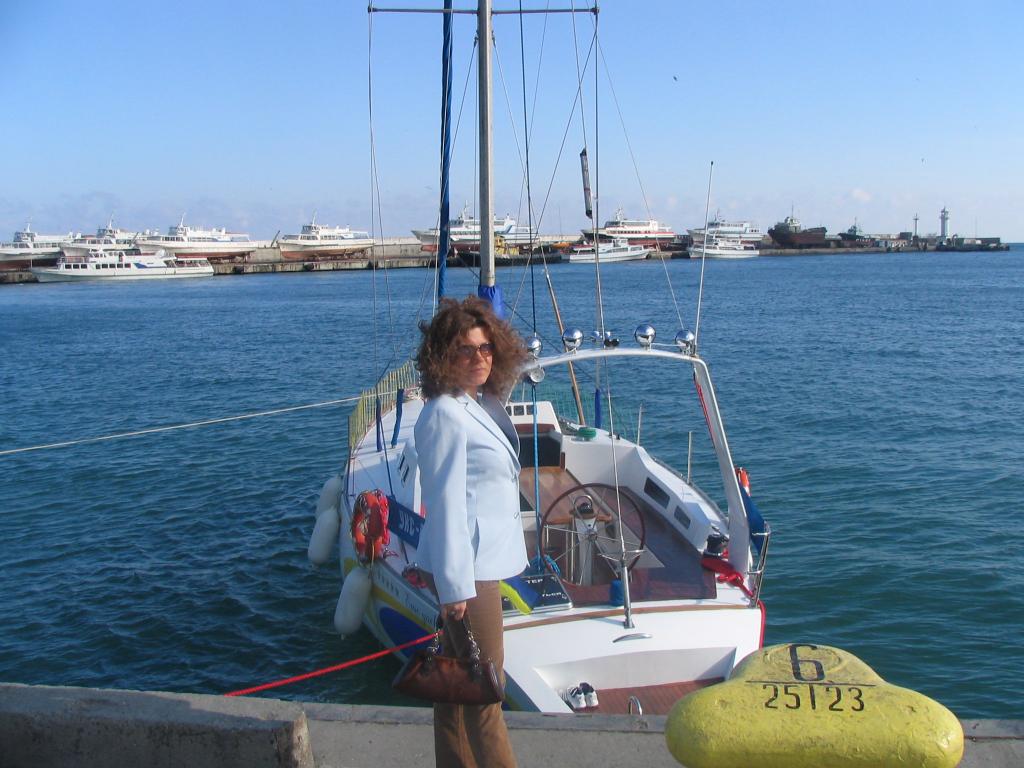 Yuliya in front of the yacht |