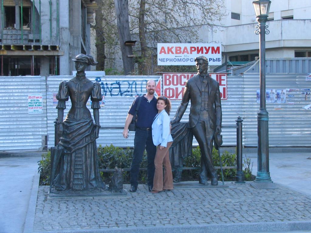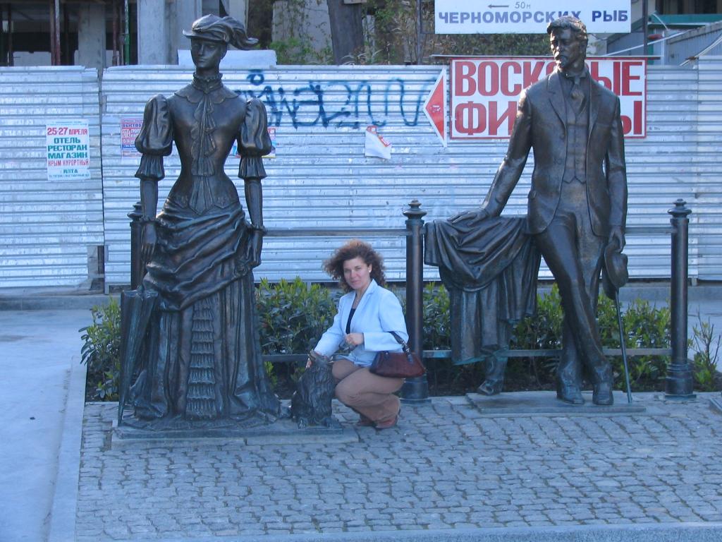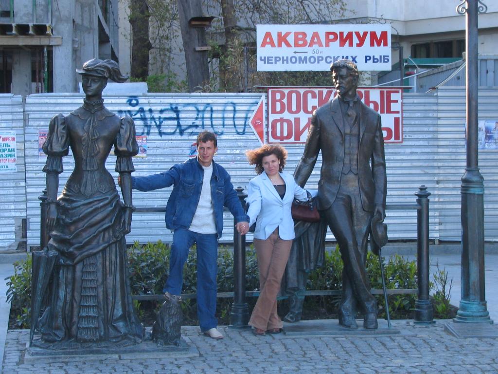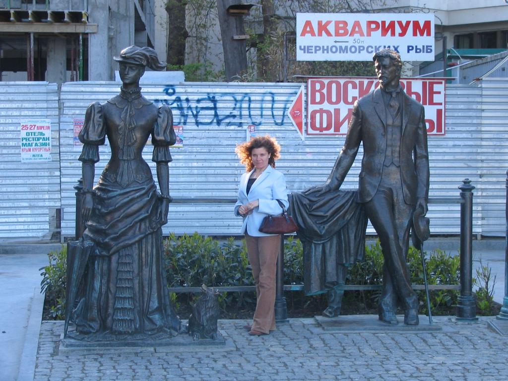 Yuliya between Russian writer A.P. Chehov and his character |